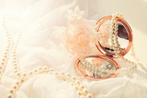 - パールのネックレスをつける
