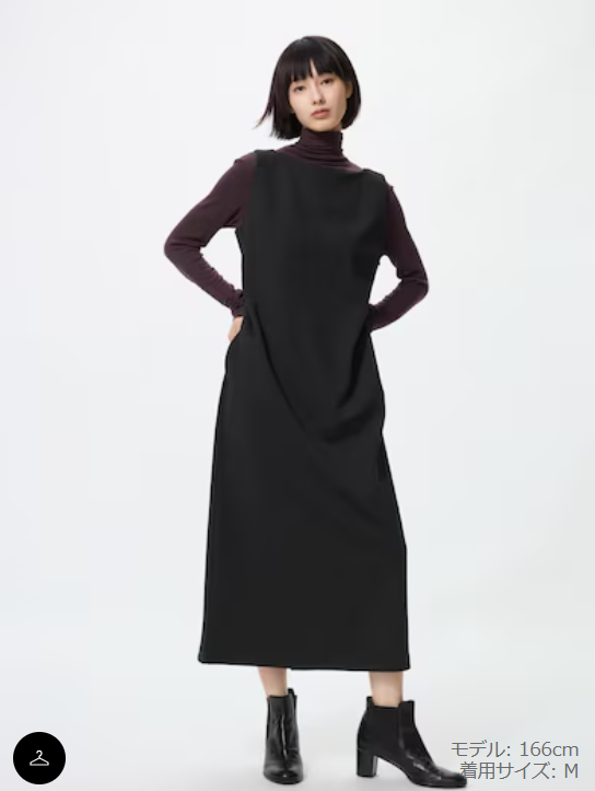 ユニクロのシンプルなワンピースなら、ジャケットを合わせることで一気にフォーマル仕様になります。